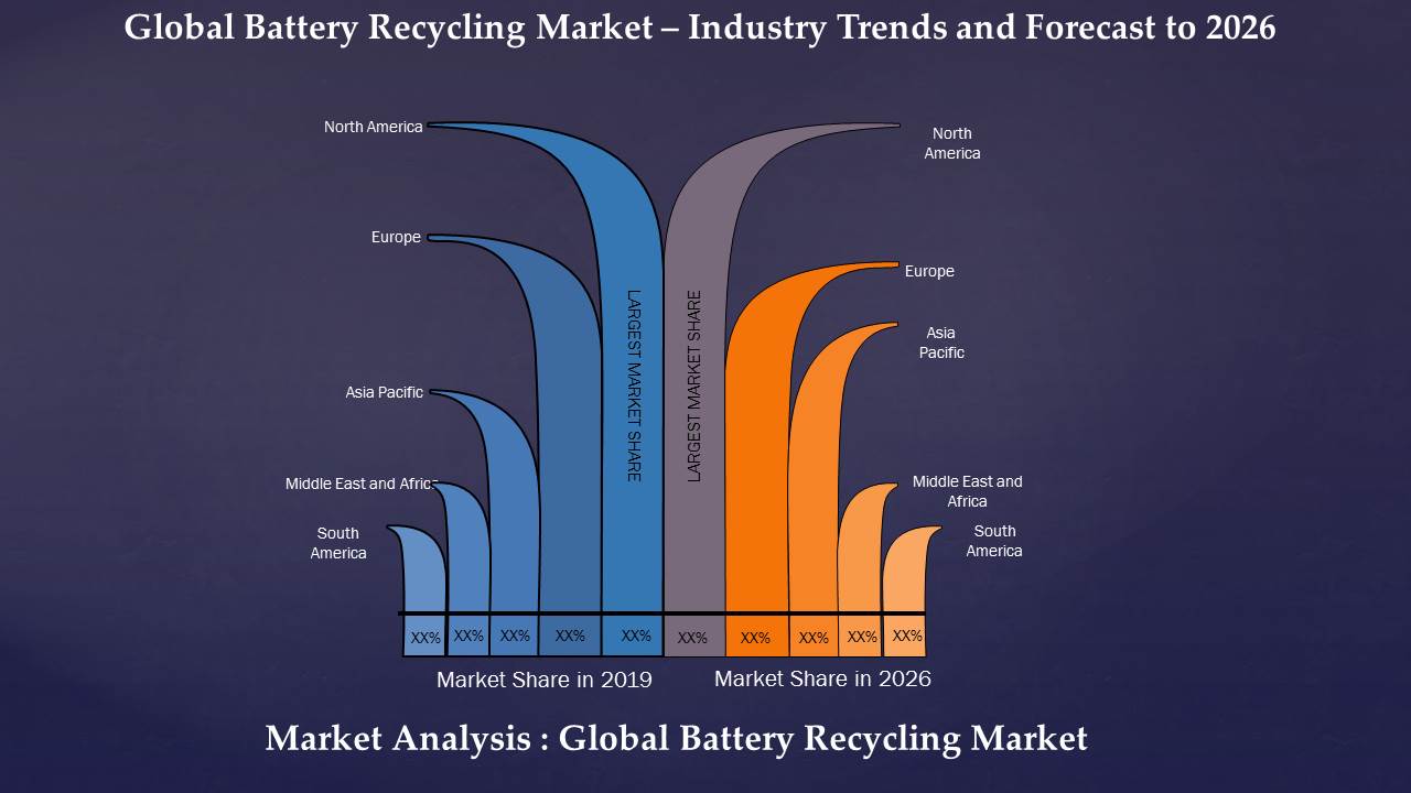 The Global Battery Recycling market report provides the global market size of the main players in each region. Moreover, the report provides knowledge of the leading markets players within the Global Battery Recycling market. The industry changing factors for the market segments are explored in this report. This analysis report covers the growth factors of the worldwide market based on end-users. Market opportunities and recommendations for new investments are also encompassed in this report.
